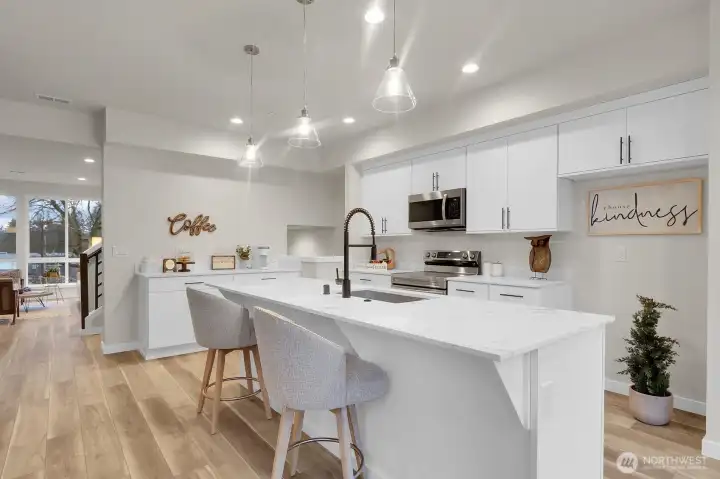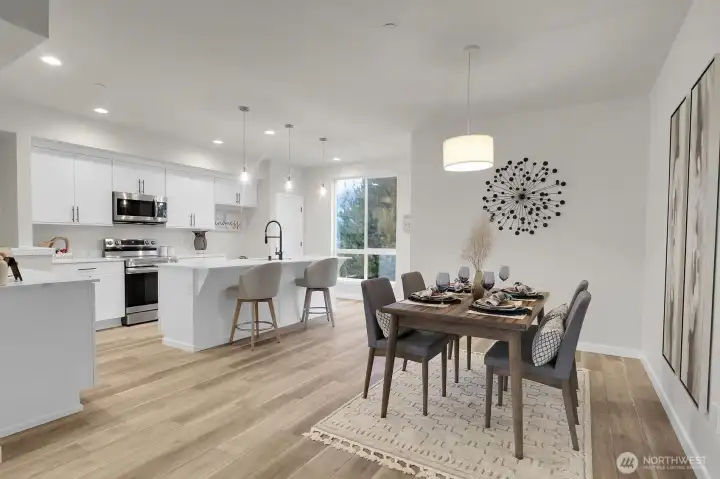 New Community Hydra – Unit B2 | New 12-unit townhome community by Landsverk Quality homes. Located in the top-rated Mukilteo School District all schools 7+ out of 10 school ratings. Featuring modern finishes, open great room layout, covered deck, and 2-car garage. This 4BD/3BA townhome offers a sleek kitchen with quartz counters. Primary suite with dual sinks, plus 3 bedrooms upstairs with a full bathroom. Main-level bedroom with ¾ bath—perfect for guests. Buyer must register broker on first visit. Photos from similar model. Mid January move in date. Photos are of a similar model finishes and color schemes are subject to change