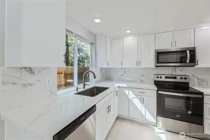 Recently remodeled 3-bed, 2.5-bath home set on an exceptionally private, flat lot w/ seclusion in BOTH the front and back—rarely found. Tucked into a quiet cul-de-sac, the property offers a peaceful setting with an expansive private deck ideal for entertaining. Updates include vinyl flooring, carpet, kitchen with quartz counters, appliances, water heater, new garage roof, & fresh interior paint. A Living room w/a large floor-to-ceiling windows that bring in abundant natural light. The main level includes a breakfast nook and flexible space for an office or formal dining. Upstairs offers two spacious bedrooms, a full bath, and a light-filled primary suite. LARGE Detached 2-car garage. Close to Mukilteo schools, Everett Mall, I-5, and more!