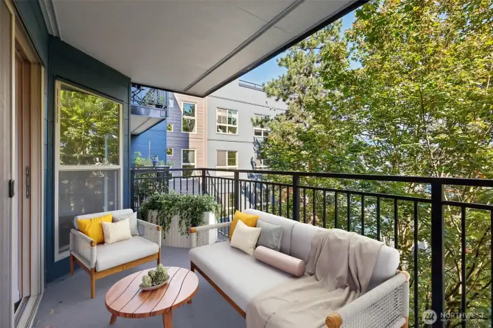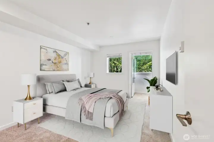 Stunning two story townhouse style unit at Nautica condominium in South Lake Union. Extra large 2bd home underwent extensive remodel in 2023. Main living floor features open spaces, private balcony with peek-a-boo view of Lake Union. Updated kitchen with stainless steel appliances and eating space, quartz countertops and LVP flooring throughout. Upper level features two large, fully renovated bathrooms. Primary bedroom boasts spacious walk in closet with sunroom/storage space. Rooftop deck with city and lake views. Two dedicated garage parking spaces, two spacious storage units. Updated building with strong HOA. Walking distance to Amazon HQ, Google and Meta. Incredible value in the heart of SLU!