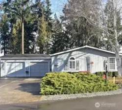 Enjoy the patio area for best location in park for privacy and surrounded by trees and overlooking the common area greenbelt behind home. Parkwood is a 55+ age restricted beautiful community and this home is on a dead end street away from the main road and just steps to the clubhouse. Immaculate condition with vaulted ceiling in living room with family room,/ office as an extra. Oversized 2 car garage with workshop. Beautifully landscaped patio area. This home is a 2 bedroom, 2 bath home situated with privacy and lots of windows. New roof in 2018. Seller will give a buyer credit at closing of $3000.