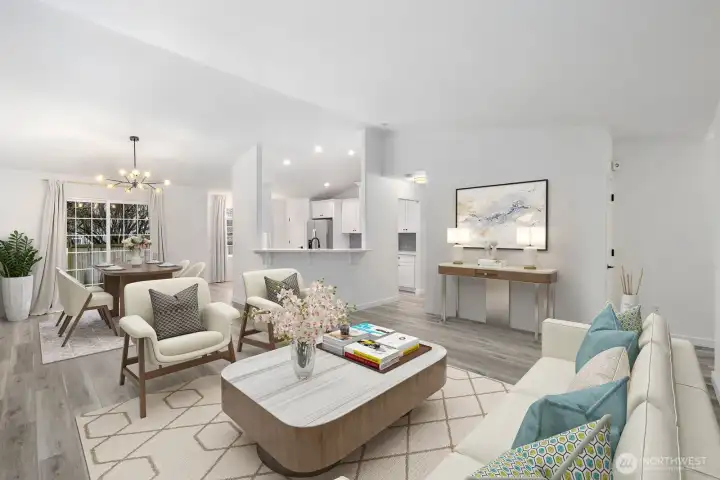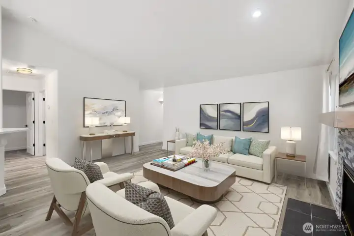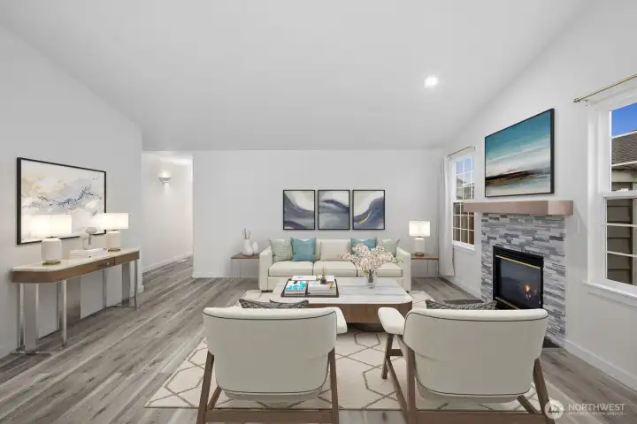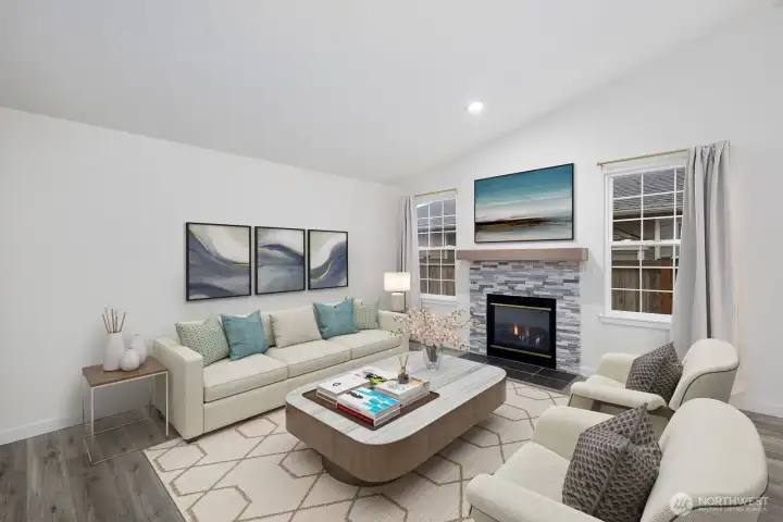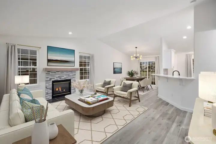 Welcome to this wonderfully renovated rambler in the heart of Marysville, in a quiet cul-de-sac! Awesome open floor plan and vaulted ceilings give the great room a welcoming feel. Cozy up next to the fire and relax! Large Primary En-Suite with large walk in closet make this space feel like home. Stainless steel Appliances, quartz countertops, and newer flooring give this property a luxury feeling. Room for a dining room, countertop eating, and coffee nook! Two other spacious bedrooms with plenty room to stretch out! Fully fenced back yard makes a perfect space for a BBQ and get together. Close to shopping, I-5, Restaurants, and more! Don't miss out on this one!