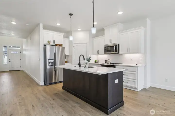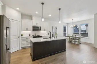 Immaculately maintained and designed to satisfy even the most discerning buyer, this exceptional home presents as truly turnkey. The open-concept floor plan features a main-level office or fifth bedroom, along with a mudroom or craft space located off the kitchen. The interior is filled with abundant natural light, high ceilings, and a mezzanine overlooking the entry. The spacious primary suite includes an ensuite bath, three additional bedrooms, and a generous laundry room complete with sink and storage. An oversized three-car garage and deep driveway provide excellent accommodation for larger vehicles. Outdoors, a covered patio overlooks the maintained yard, creating an ideal setting for al fresco dining or everyday enjoyment.