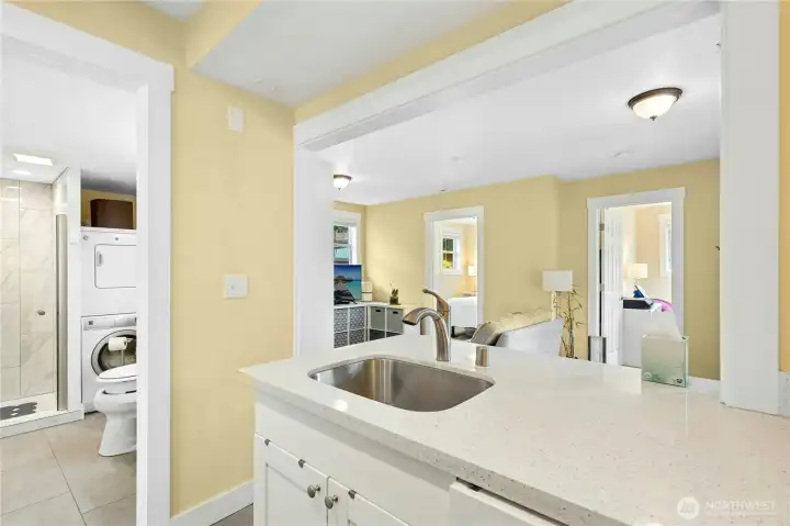 Wonderful opportunity for multigenerational living in this one-of-a-kind 4-bedroom, 2-bath West Seattle home, fully rebuilt in 2017, offering 1,540 sqft of light-filled living on a 5,200 sqft lot. A desirable split bedroom floor plan provides flexibility for multigenerational living, extended guests, or a home office arrangement. The layout allows for connected yet distinct spaces, each with its own entrance, kitchen or kitchenette, laundry, and full bath, ideal for a mother-in-law setup or flexible living needs. Enjoy a private, low-maintenance backyard featuring a Trex deck, pergola, dog run, & a large shed or flex space. Conveniently located near Westwood Village, Lincoln Park, the Fauntleroy ferry, downtown Seattle, and Sea-Tac Airport.