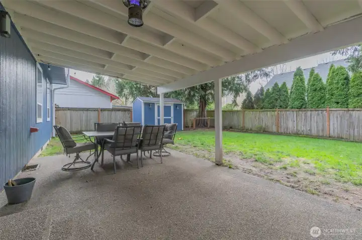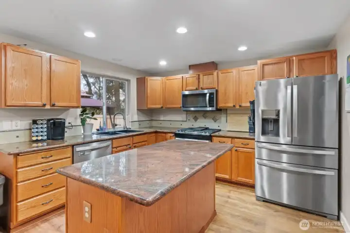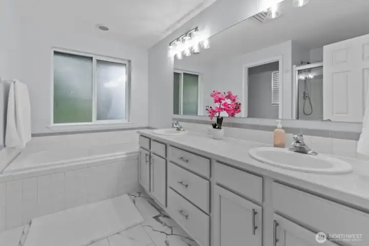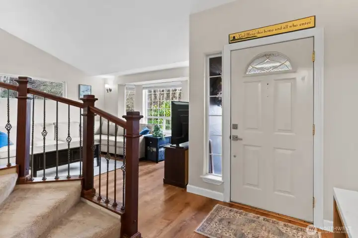 2.25% VA Assumable rate! Discover the perfect blend of comfort and convenience in this beautifully maintained 2,171 sq. ft. home! Centrally located in a quiet, sought-after neighborhood on the Olympia/Lacey border, this 4-bedroom, 2.5-bath gem offers unbeatable access to I-5 for an easy commute. Step inside to a bright and airy interior featuring soaring vaulted ceilings and a large bay window that floods the living space with natural light. The heart of the home is the spacious kitchen, boasting gleaming granite countertops, a center island, stainless steel appliances, and rich wood cabinetry perfect for entertaining. Upstairs, retreat to the luxurious primary suite complete with a spa-like bathroom featuring a dual vanity, vinyl plank floors, and a relaxing soaking tub. Outside, enjoy year-round outdoor living on the expansive covered patio overlooking the private, fully fenced backyard. With a 2-car garage and pristine curb appeal, this move-in-ready home checks every box. Don't miss out!