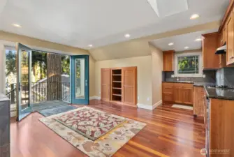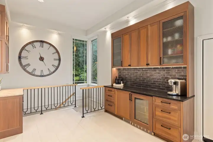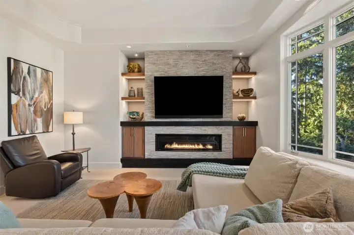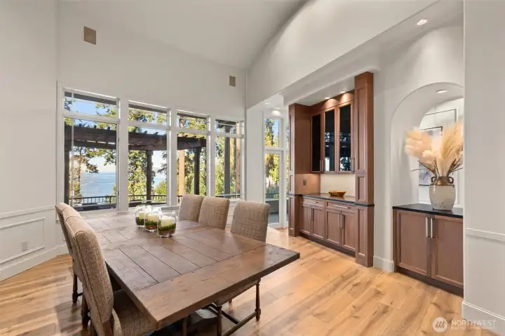 Defined by natural materials, abundant light, & sculptural, softened architecture, this refined residence offers a calm, intentional approach to Northwest luxury living. Set on almost 1/2 an acre of meticulously manicured grounds, offers breathtaking views of the Sound, providing a serene treehouse-like retreat. The custom floorplan highlights a spacious kitchen with oak cabinets and beautiful hardwood floors, perfect for both daily living and grand entertaining. The luxurious primary suite features a private patio, large walk-in closet, and a five-piece bath with a soaking tub and chandelier. With three additional bedrooms, a media room, office, and a grand wine cellar, this estate also includes a detached 1-bed, 1-bath ADU for guests or rental income. Enjoy five garage spaces and unparalleled privacy in this once-in-a-lifetime home!