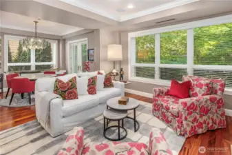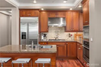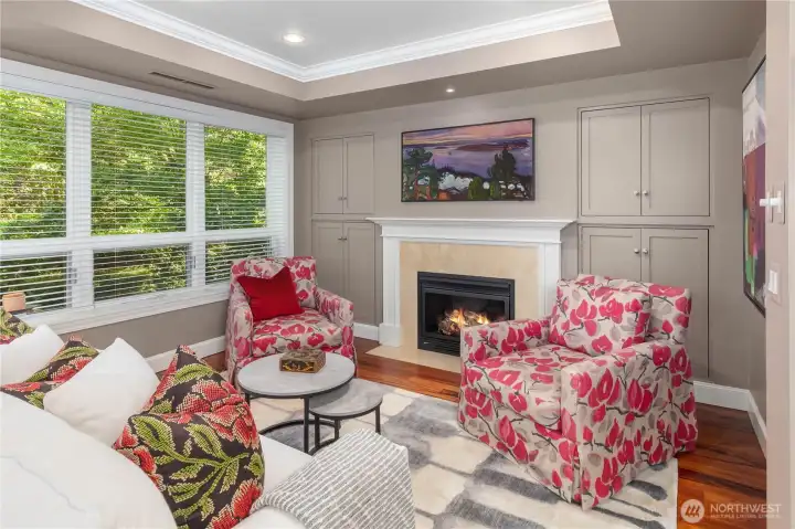 Welcome to The Harvard Estate-Coach House. This gorgeous corner unit welcomes with sophisticated architectural detailing, light-filled spaces, and an open floor plan, perfect for gatherings. Built from concrete & steel. Highlights: 9’ coffered ceilings w/ crown moldings, beautiful wood flooring, cook’s kitchen w/ SS appliances, slab granite counters & lg kitchen island w/seating, gas fireplace, custom sound system, brand new central A/C, laundry closet, whole-unit sprinkler system, & balcony overlooking gardens. Primary suite: marble bathroom with separate tub & shower, heated floors, and walk-in closet, Gym/exercise room in each bldg. 200sf private storeroom. 2 secured garage spaces. Perfect Seattle retreat. Quality. Style. Extraordinary!
