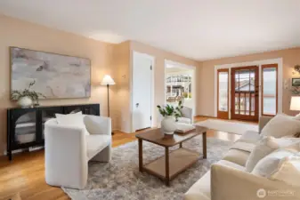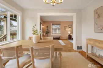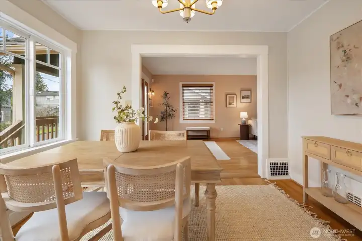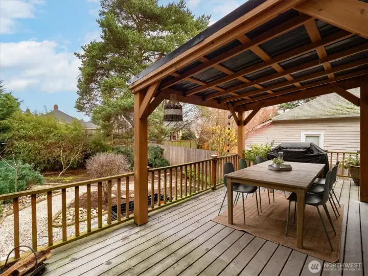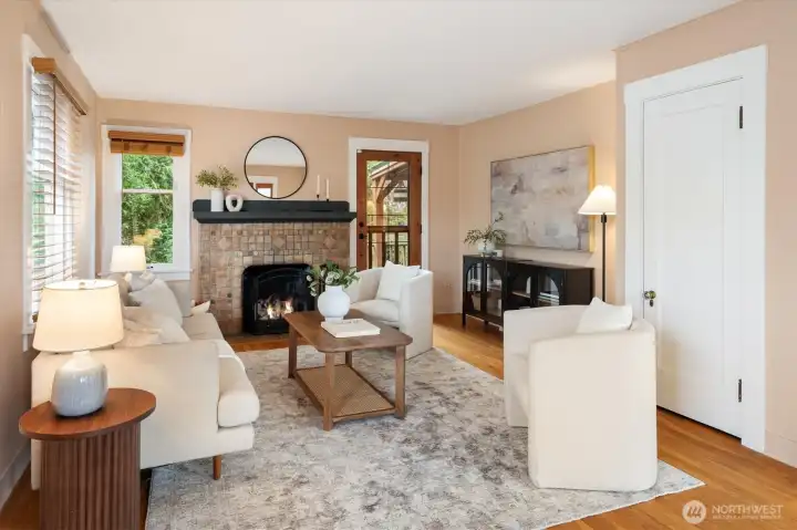 Classic 1926 Craftsman charm meets modern living. Enjoy front porch vibes & elegant fenced South facing courtyard. Enter into a spacious, open living room w/ gas Batchelder fireplace & seamless flow to a fully fenced, private backyard featuring large deck & pergola—perfect for evenings outdoors. The main floor includes a sunny dining room, kitchen with updated appliances, bedroom, full bath & walk-in closet. Upstairs, two additional bedrooms include serene primary with en suite. Lower level offers a fourth bedroom (great for home office), bathroom, plus versatile bonus space for guests or game day. Thoughtful updates include solar panels, a new roof, and updated furnace, water heater, and electrical panel. Attached garage plus off-street parking. All just minutes from Green Lake and the vibrant cafés and restaurants of the Greenwood/Phinney neighborhood. Home and sewer inspections available.