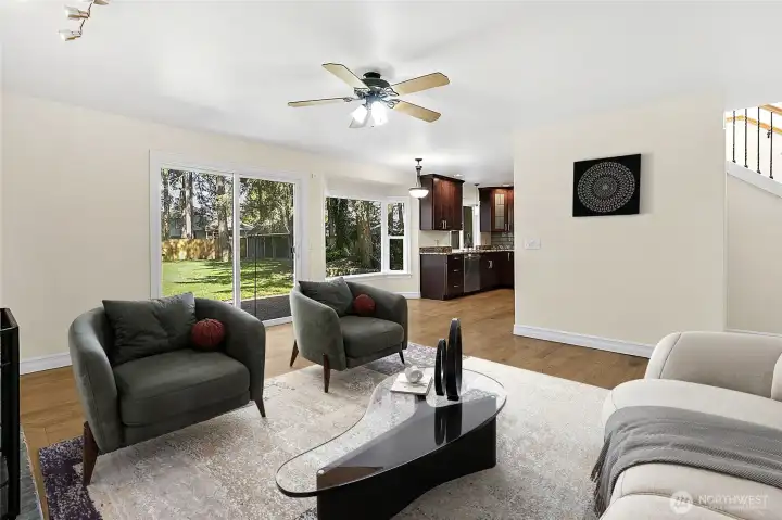 NEW PRICE!! Nestled in Kent/Covington area close to Maple Valley & Lake Sawyer. This gem sits nearly on a third of an acre in a quiet neighborhood featuring 3 beds, 2.5 baths, & a large fully finished 3-car garage. The light-filled open floor plan w solid hardwood flooring throughout gives endless charm & elegance. Living area w brick fireplace creates cozy atmosphere. The kitchen boasts stunning marble countertops w oakwood cabinets, a large kitchen pantry, & sleek SS appliances. Enjoy the massive fully fenced backyard large w shed/chicken coop. Recent updates include a Generac generator to power the entire house, furnace, & heat pump for A/C. Newer stove & washer/dryer. Simply Safe security system included, NO HOA & close to everything!