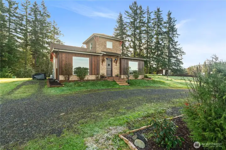 Welcome to 4692 Sand Road—an exceptional hilltop retreat offering privacy, views, and modern charm. This 1,536 sqft home, built in 2016, sits on 1.89 acres with a circular drive-through driveway, shed, and two chicken pens already stocked. Enjoy sweeping views of the county and snowcapped mountains from this elevated setting. Inside, the custom-built interior features exposed wood beams, hardwood flooring with heated bathroom tile, soaring 10-foot ceilings, skylights, and an abundance of natural light. The open, inviting space is complemented by stainless steel appliances and thoughtful finishes throughout. A rare blend of comfort, character, and country living—this property is truly one of a kind.