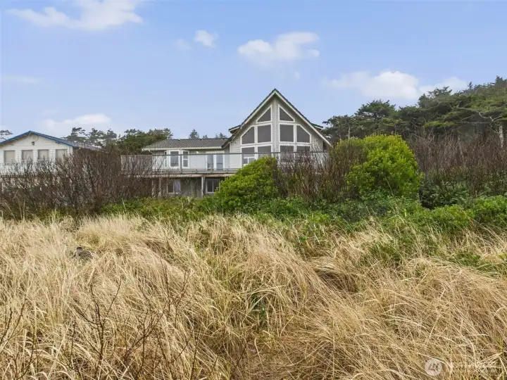 This stunning no-bank oceanfront home offers direct beach access leading to wide, sandy shores. Built on engineered columns, this two-story retreat is designed to maximize breathtaking views of Pacific Beach.The main living area is located on the second floor, featuring an open-concept layout with classic Northwest charm and a spacious deck perfect for enjoying sweeping ocean vistas. The upstairs also includes cozy bedrooms, while the ground floor offers a generous bunk area—ideal for guests or extra sleeping space. Just two minutes from all the amenities of Seabrook, yet with the privacy of miles of beachfront right at your doorstep, this is the perfect coastal getaway for relaxation and adventure.