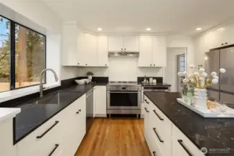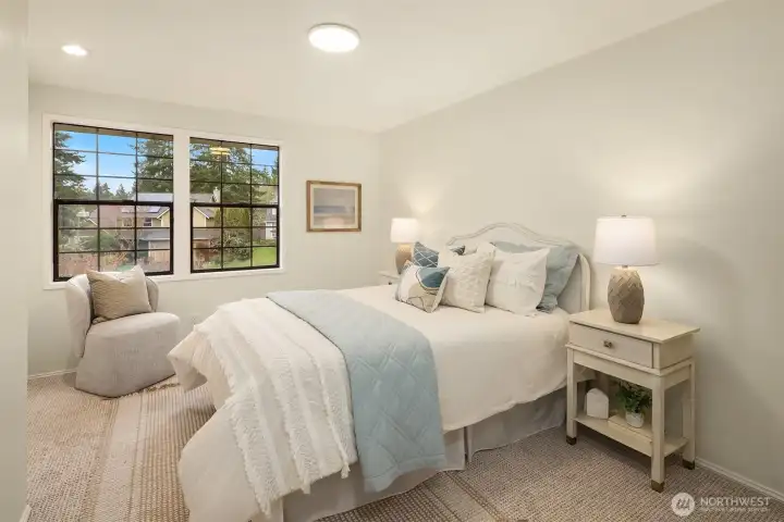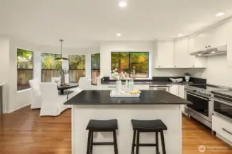 Perfectly situated on a quiet cul-de-sac in Redmond’s coveted English Hill neighborhood, this meticulously remodeled Burnstead-built home blends clean lines with warm, comfortable living. The freshly painted interior is flooded with natural light, creating a bright, open, and inviting atmosphere throughout the home. Thoughtful updates elevate every space, including gorgeous hardwood floors with a contemporary matte finish, new plush carpet, and designer lighting, plus a 50-year Presidential roof for long-term peace of mind. The refined kitchen features slim shaker custom cabinetry, quartz countertops, and a 36” Electrolux induction range paired with a high-end stainless steel appliance package. The kitchen opens seamlessly to a sunlit eat-in nook and flows into the family room, anchored by a cozy gas fireplace, perfect for game days. Upstairs, the spacious primary suite offers a reading nook by a charming bay window and a large walk-in closet. The stunning five-piece bath includes a deep soaking tub and a spacious shower, creating the perfect retreat after a long day. 3 more bedrooms complete the upper level, with the oversized fourth bedroom offering flexible use as a bonus room. Outdoors, enjoy a fully fenced yard with a patio ready for grilling, relaxing, and effortless entertaining. Ideally located close to parks, dining, and major tech campuses. You are just a short walk to Sunrise Elementary, within the top-rated Northshore SD.
