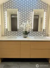 Mid-century modern with a twist! One-story living that is sited on a private lane, a home that lives as beautifully as it looks. Inspired and reimagined for comfort & entertaining. Light & airy interior welcomes you to a generous size living room, modern fireplace & garden views. Clean lines compliment the Chef’s kitchen: white oak cabinets, lighted stainless steel floating shelves, stone surfaces, Wolf cooktop, Liebherr fridge & large island with seating for four. Extensive hardwoods throughout. Oversized family room + cozy dining room merges with the kitchen, highlighted by a wall of windows overlooking the private backyard, bringing the outdoors in. Flexible office/5th bdrm with closet. Primary suite with floor-to-ceiling windows, remote control blinds & stylish bath renovation (2024) features Ann Sacks tile, skylights, heated floors & custom closet with built-in dressers. Beautifully remodeled full bath with custom cabinets, floating vanity, modern soaking tub & heated floors. Serene, fully fenced backyard has expansive patio, firepit, mature landscaping & irrigation in front and backyard + Dog run/chicken coop. Metal 50 yr. roof (2024), New exterior paint (2023), Lutron lighting systems (2024), 2 gas furnaces & new water heater (2023) w/ recirculating pump. Oversized 2 car garage. Steps to Lakeridge Elementary & Islander Middle.