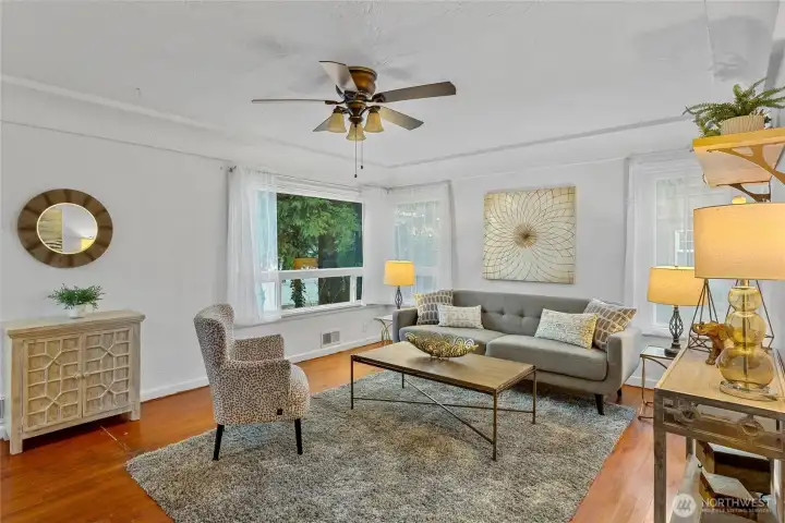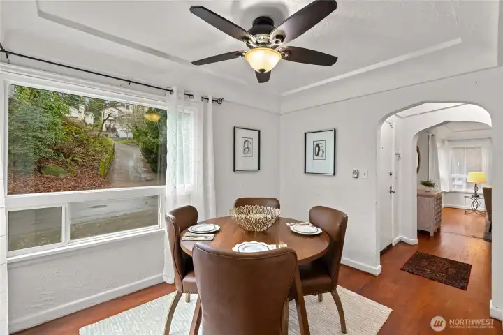 Charming inside and out! Completely turnkey 1980 sqft 3 bedrooms + extra finished room and 1.75 bathrooms. Cove ceilings, arched doorways, and crystal knobs. Hardwood floors throughout the main level. Granite gourmet kitchen with a sunny eating area and a walk-in pantry. Formal dining. Lower level opens to a large rec room, Bedroom, 3/4 bath, and a huge EXTRA FINISHED ROOM- that could be the fourth bedroom, which has a private entrance. Large laundry room with loads of storage. New hot water tank. Fantastic 8951 sq ft yard with mature plantings, patio space, a gazebo, and off-street parking for two cars. Roof installed 2012—easy commute to Downtown Seattle, SeaTac Airport, and more. Move-in ready.