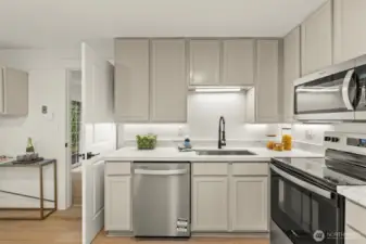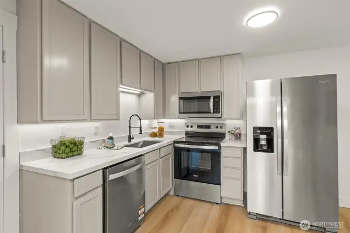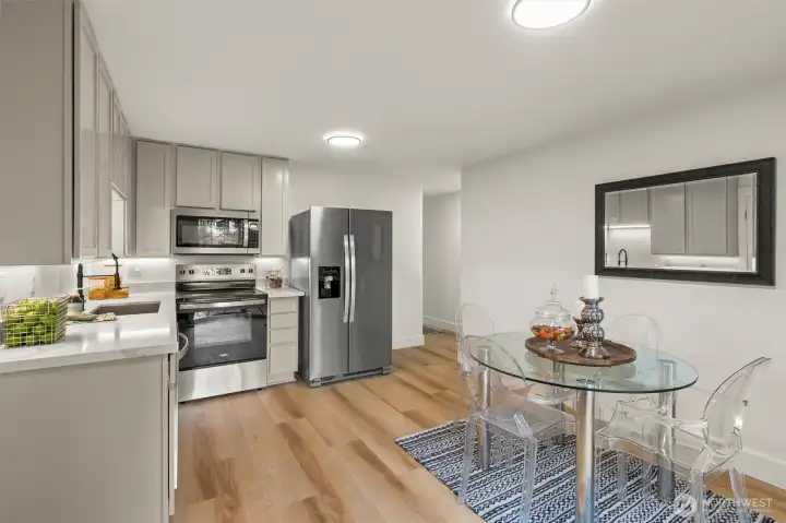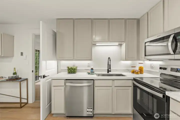 Beautifully updated Frederickson-area rambler featuring 4 bedrooms and 1 bathroom with a functional, efficient floor plan. Recent updates include new flooring throughout, upgraded doors and millwork, and fresh interior finishes. The kitchen is finished with quartz slab countertops and stainless steel appliances, while the bathroom features a new vanity with quartz slab countertop. Tucked away on a quiet cul-de-sac with a large yard ideal for entertaining. Excellent location with easy access to JBLM, shopping, and major commuter routes.