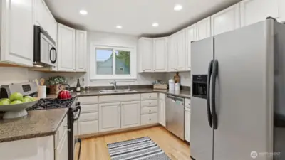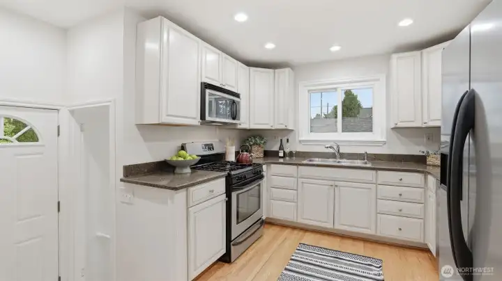 Welcome to this beautifully refreshed 4-bedroom, 2 full bath home in the Greenwood neighborhood, perfectly situated on a corner lot with a brand-new 30-year roof. Bright and inviting, the home features new interior paint, newly refinished hardwood floors, new light fixtures and plentiful windows create a welcoming and comfortable living space. The open layout is anchored by a cozy wood-burning fireplace while the finished basement adds flexible space for living, entertaining or office. Additional highlights include a newer furnace, a detached garage potential for DADU, ample off-street parking and a spacious deck on a level lot—perfect for outdoor enjoyment. Conveniently located near public transportation. Just minutes from major highways.