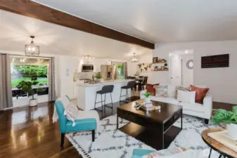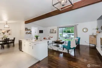 Welcome home to inviting single-story living in this updated 3-bedroom, 1-bath Bremerton gem, tucked into a quiet neighborhood with an attached garage. Vaulted ceilings and an open-concept living area welcome you with a bright, airy feel. Recent improvements include a new roof, vapor barrier in the crawl space, stylishly renovated kitchen with new cabinets, quartz counter tops, stainless steel appliances, plus a beautifully updated spacious bathroom. Step outside to a large covered patio and a fully-fenced, freshly landscaped yard, ideal for year-round entertaining. Conveniently located near Lions Park, dog walking trails, softball fields, PSNS, and the waterfront, this move-in-ready home truly shows pride of ownership. A must-see!