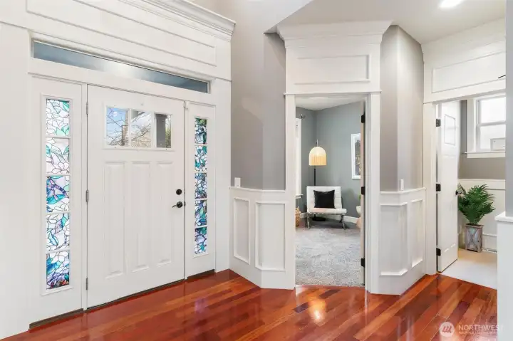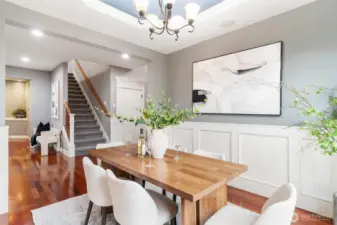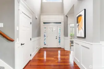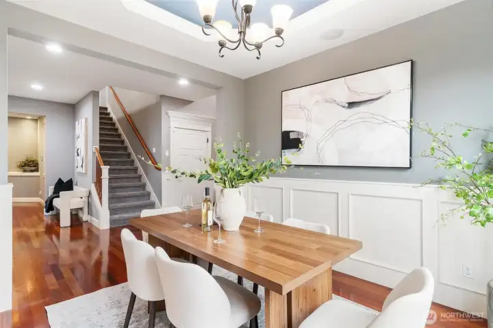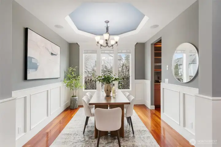 Exceptional Renton Highlands home offering style, comfort, and luxury in a thoughtfully designed layout. Vaulted ceilings and rich wood trim enhance the open concept living spaces, featuring Brazilian cherry hardwoods, a cozy fireplace, and elegant dining room ceiling detail. Chef’s kitchen includes a pot filler faucet, large pantry with butler’s nook, and wine storage—ideal for entertaining. Wired ceiling speakers extend to the covered patio. Recent upgrades include a UV air purification system, brand-new water heater, and central A/C. Main-level primary suite with custom closets, art niche, and secondary W/D hookups. Office/den on main. Upstairs junior suite and bonus room. Private landscaped backyard. Top rated Issaquah School District.