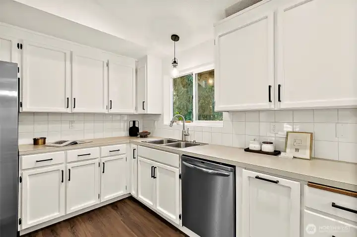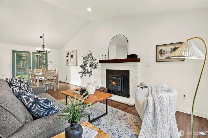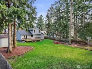 Beautiful park like setting, hard to find 15,210 sqft corner lot. Light and bright floor plan with an open concept, vaulted ceilings and gleaming vinyl plank floors. Spacious kitchen with stainless steel appliances, lots of counter space and cabinets. Dining room with French doors that lead out to the entertainment sized deck that is 2 years new. Many updates throughout. 3 bedrooms and 1.75 baths. Primary bedroom has vaulted ceilings, walk-in closet and a gorgeous, remodeled bathroom. Separate laundry room with built-in cabinets. Tons of storage. Fully fenced yard, sprinkler system, RV parking, sport court, firepit and shed. Excellent location!
