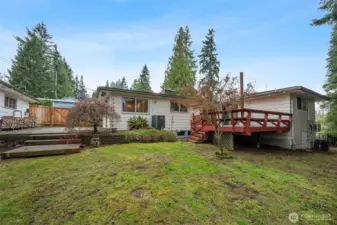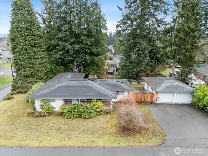 Set on a quiet Everett street, this home offers space, privacy, and opportunity. The layout flows comfortably from one room to the next, creating an easy, welcoming feel throughout. The primary bedroom opens directly to the backyard deck, adding a natural indoor-outdoor connection. A fully fenced yard with patio and mature trees provides a calm setting to relax or gather. Inside, 1,460 sq ft on the main level features a wood-burning fireplace, new carpet, and newer appliances, with a 600 sq ft partially finished basement ready for your ideas. A two-car detached garage with EV hookup adds modern convenience, all on two city parcels totaling 12,197 sq ft.