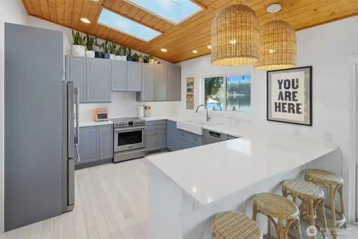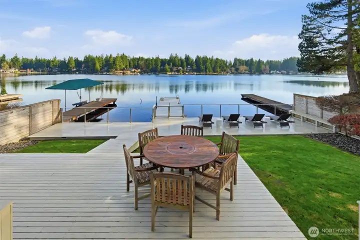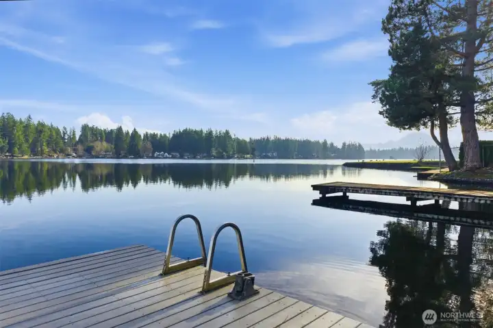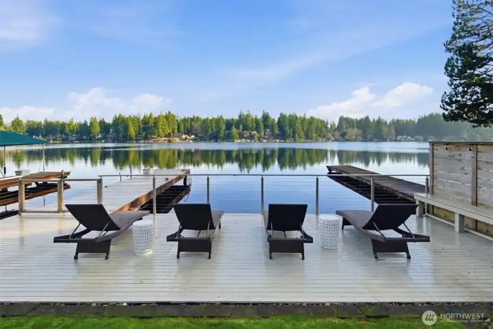 Experience the best of Lake Sawyer on a premier section of the lake with 55' of low-bank waterfront. This perfectly positioned home offers an effortless connection to the water, where the kitchen and living areas flow directly onto the expansive deck and flat backyard for easy lakeside entertaining. The 1,440 SF main house features floor-to-ceiling windows and a private dock with a boat lift. A massive 1,000 SF shop offers 3 bays, 10' doors, and 14' ceilings, ideal for boat or car storage. Included is a 562 SF DADU with a full kitchen, perfect for guests or an office. With two fenced yards and 2,002 SF of total finished space, this Black Diamond compound provides rare accessibility and unmatched utility in a coveted location.