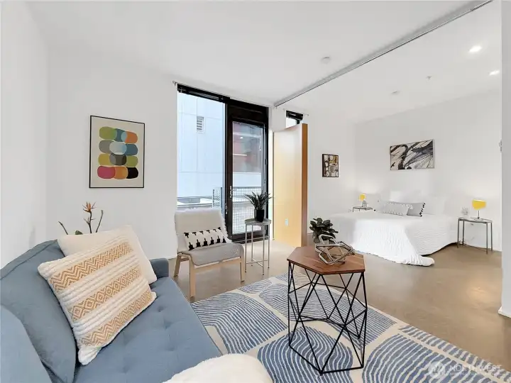 Designed by Tom Kundig, this flexible urban loft sits in the heart of Capitol Hill’s vibrant Pike/Pine corridor. Soaring 9’ ceilings, polished concrete floors, and a signature sliding puzzle wall create adaptable space for modern living. Floor-to-ceiling windows and a Juliet balcony overlook lively Chophouse Row. Includes stainless appliances, in-unit laundry, secure garage parking, and storage. Pet-friendly, no rental cap. Rooftop deck and a Walk Score of 100 complete the package.