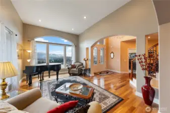 Wake up to sweeping mountain, river, and valley views from almost every room, perfectly positioned to capture east-facing sunrises, moonrises, and golden hour at dusk. Brazilian cedar hardwood floors paired with soaring 9–18 ft ceilings, a grand staircase, and a stunning new chandelier that sets the tone on entry. Recent updates include new lighting throughout, fresh carpet upstairs, new paint, central air, a new furnace, microwave, washer, and updated hardware. The well-designed kitchen and dining areas flow easily for entertaining. With 4 spacious bedrooms, a large primary bath with breathtaking views, a separate downstairs rec room, low-maint landscaping, and a quiet, loved neighborhood, this home is made for comfort and connection.