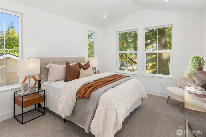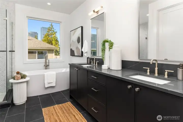 Thomas James Homes proudly presents a new West Bellevue residence in Surrey Downs with a walk score of 89! Minutes from Old Main, dining, shops, and parks, this home blends modern luxury with everyday convenience. Double-height great room and vaulted ceilings throughout create abundant natural light. Dual-sided fireplace warms both the great room and office/den. Gourmet kitchen with gas cooking, top appliances, and expansive pantry flows into a large dining area, great for entertaining, with a main-level guest ensuite. Step outside to a spacious east-facing yard and covered patio for year-round enjoyment. Upstairs, the primary retreat offers city views, spa-like bath, and private deck, along with two addl bedrooms & a versatile bonus room!