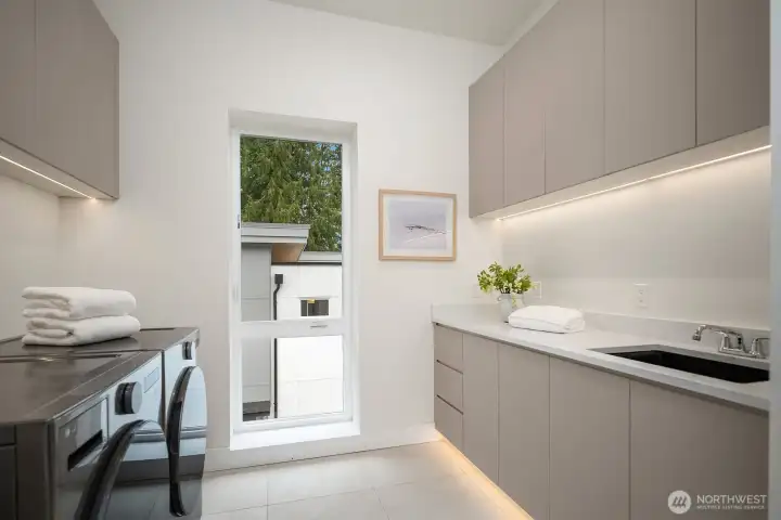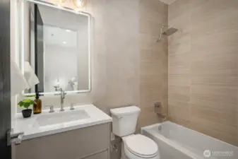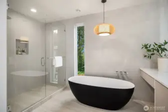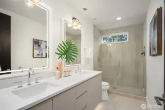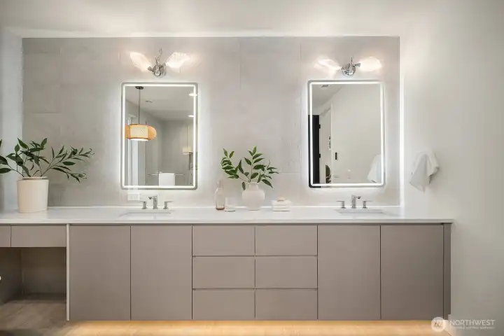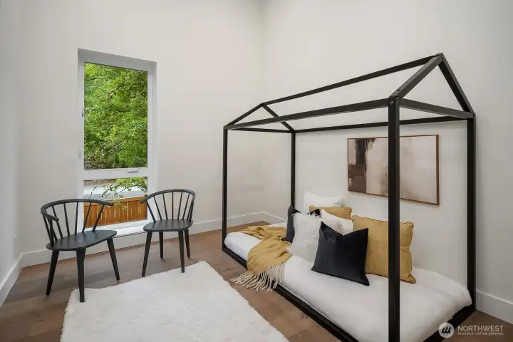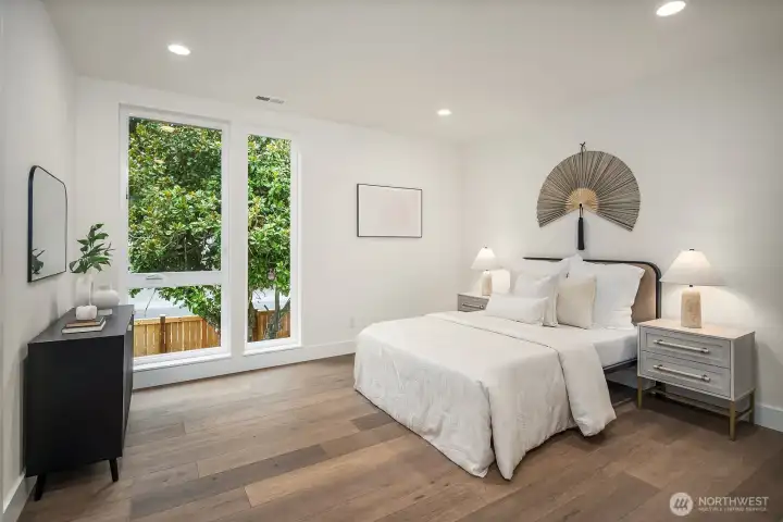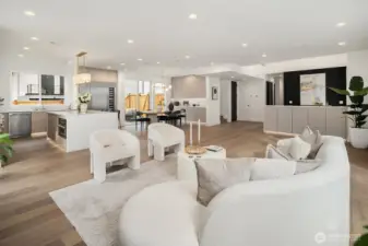 NO HOA. Scandinavian Zen–inspired 6 bed/5 bath home with quiet luxury design and impressive 9’–12’ ceilings. Expansive windows, LED lighting, and acoustic-engineered walls enhance comfort and privacy. Chef’s kitchen showcases quartz counters, custom cabinetry, Thermador S/S appliances and walk-in pantry. Main floor offers a private guest ensuite, ideal for extended living, plus a flexible office. Upstairs skybridge separates two distinct wings and connects additional bedrooms, theatre room, laundry room, and a serene primary suite with spa-like bath, private balcony, and generous walk-in closet. Enjoy a fully fenced yard, epoxy-finished garage and ERV system. Prime location near I-90, downtown Bellevue, Seattle, shopping and dining.