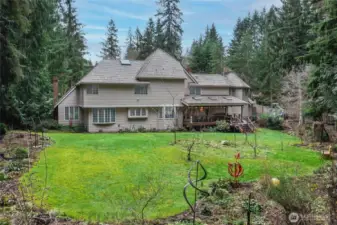 Spectacular Westchester Buchan home showcasing exceptional quality, livability, & style. Generously proportioned rooms throughout with a classic 4 bed, den & bonus, dual staircase floorplan. The chef’s kitchen features granite counters, a large island & premium appliances, flowing seamlessly into the spacious family room and expansive covered outdoor living space—ideal for effortless entertaining. Large primary suite w vaulted ceiling, separate dual vanities & open stone shower. Three additional large bedrooms and discrete bonus/media room fully equipped w screen, projector & 5.1 surround sound. Newer interior paint & carpets throughout plus heat pump for efficient heating & AC. The re-imagined yard offers a true escape with expansive lawns, well-stocked perennial borders, ornamental trees, large glass greenhouse & raised garden beds, gazebo & patio, as well as peaceful woodland trails that invite daily retreat. Peaceful cul de sac setting in this fabulous neighborhood with top-rated schools, miles of nearby trails and an easy commute.