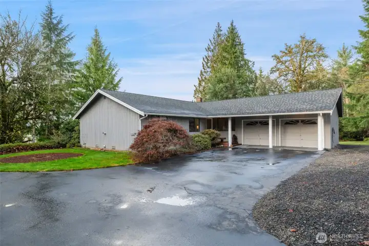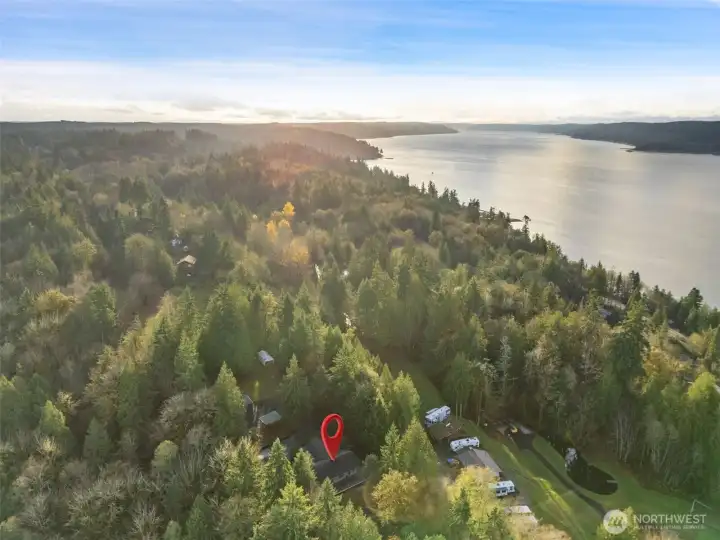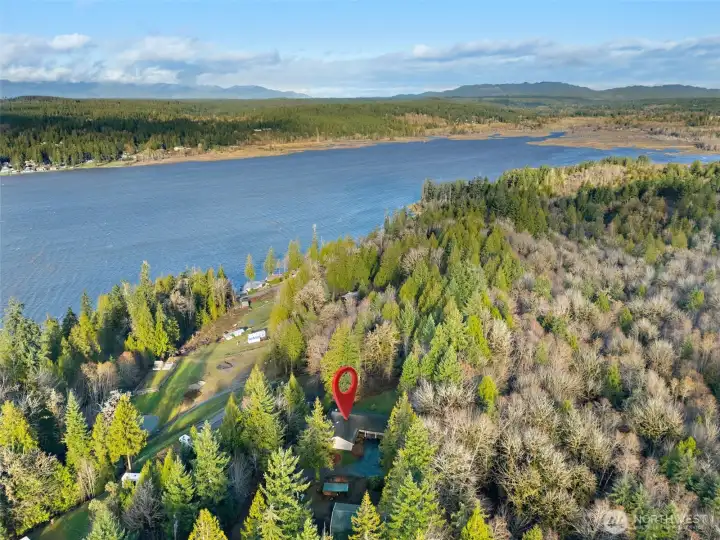 Peaceful, private acreage with stunning Hood Canal and Olympic Mountain views! This 1,460 sq ft single-level home offers 3 bedrooms and 1.75 baths with vaulted ceilings, big windows, and abundant natural light. Cozy wood stove adds warmth and charm. Attached garage plus detached shop and shed provide excellent storage and workspace. Two parcels totaling 7.25 acres feature beautiful greenspace with a tranquil trail winding through dense forest—perfect for exploring, relaxing, or enjoying nature. A rare opportunity for space, privacy, and views close to Belfair. Accessed by a paved road and driveway with a noticeable grade, offering added privacy and scenic outlooks.