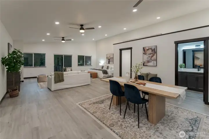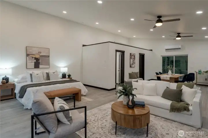 Behind a private gated entry, this new construction modern barndominium sits on 8-acres of exceptionally usable land with panoramic views of Mt Pilchuck. The setting feels peaceful & removed from traffic, with open sightlines, forested surroundings, & naturally well-draining terrain. The newly built structure anchors a larger estate vision, featuring a substantial high-bay garage & a refined open-concept studio above w/ quartz finishes & abundant natural light. Well, power, & septic capacity support two full residences, offering uncommon flexibility & future compound potential. Additional features include heat-pump mini-splits, an electric fireplace, solar panels, Starlink internet, & riding lawn mower included. 48°06'00.4"N 121°49'09.4"W