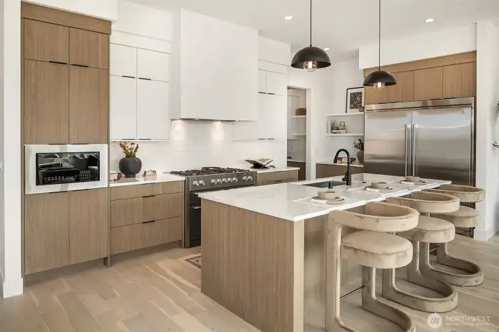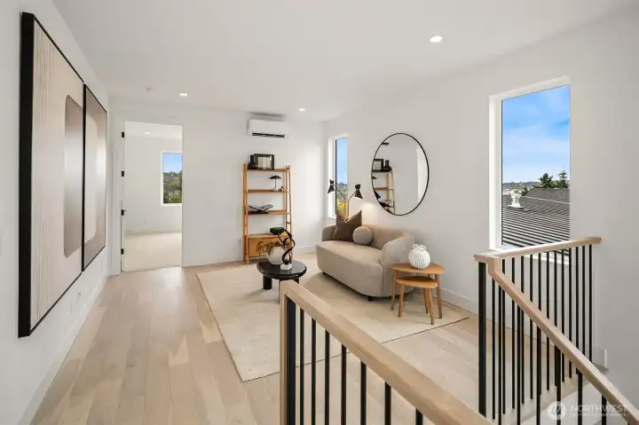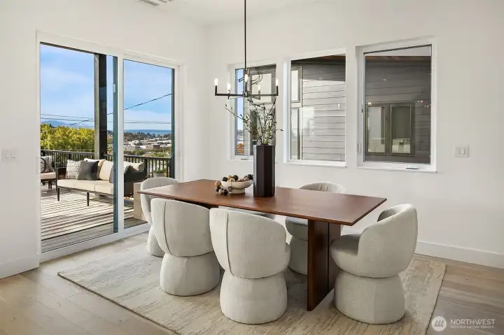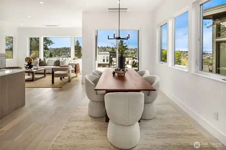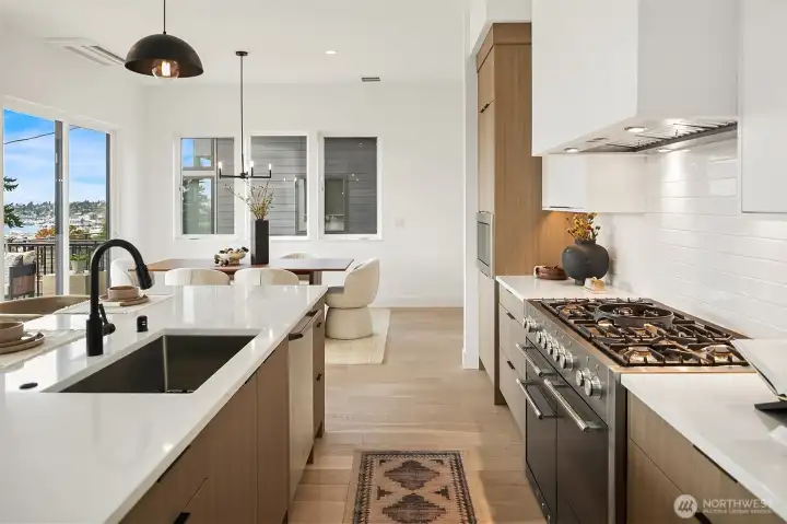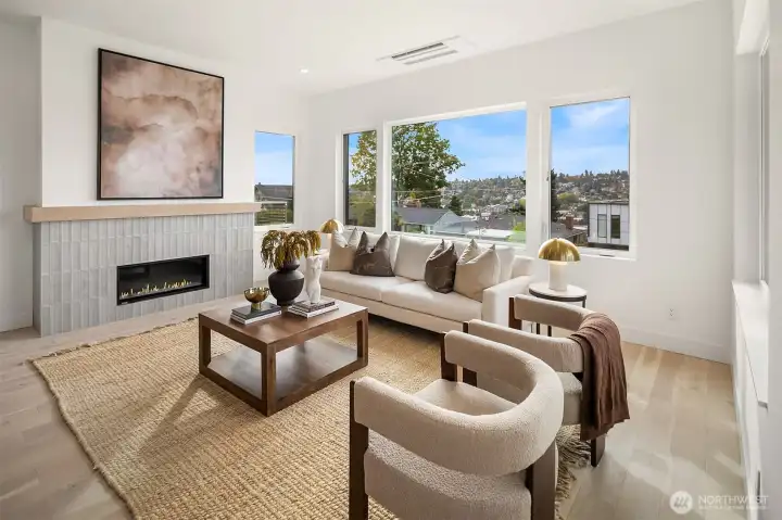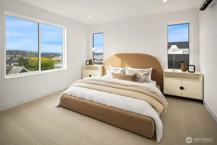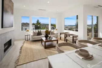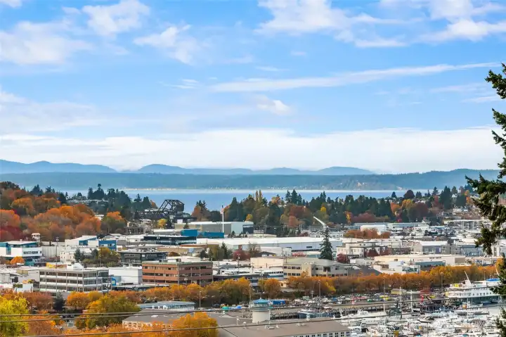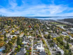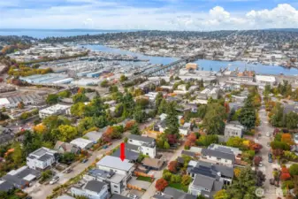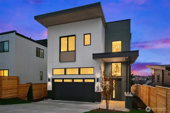 Perched atop North Queen Anne, this Thomas James Homes New Construction blends thoughtful design with everyday beauty. Soaring ceilings and expansive east-west windows invite natural light and offer unobstructed west-facing views from the main level. Primary suite showcases even more stunning vistas of Salmon Bay, Shilshole, and Elliott Bay. Modern architecture pairs timeless finishes with a gourmet kitchen featuring gas cooking, plus a two-car garage, mudroom, and pantry entry for effortless living. The lower level includes a private-entry bonus room, great for rental income, multi-gen living, rec room, or a flexible office. Steps from parks, waterfront trails, shops, and with easy access to downtown, SLU, and major employers.