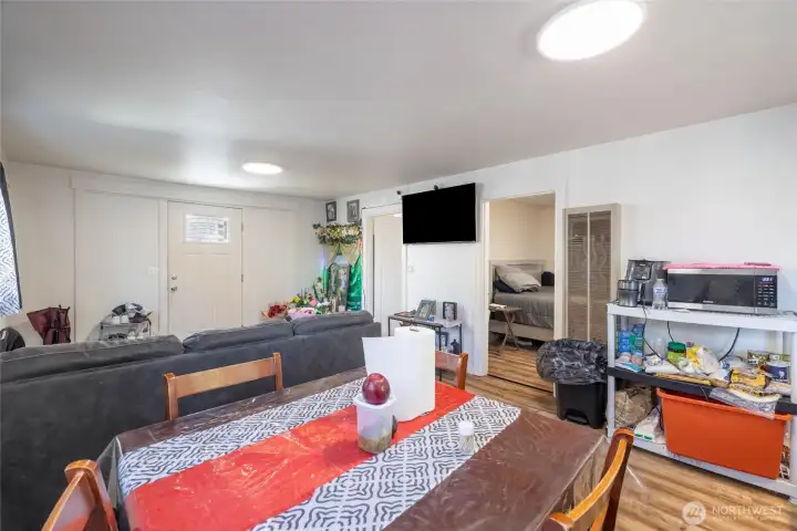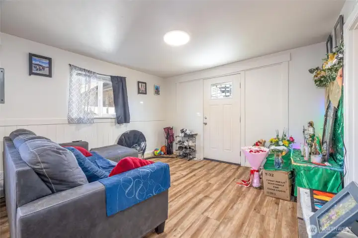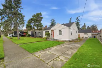 Freshly renovated! New carpet, interior paint throughout & LVP flooring in front home. Two homes on one lot! Imagine owning a home to live in with automatic income from the back ADU from day 1. Or maybe you prefer to rent both as a fantastic investment? Sky is the limit here. Main home with 833 sq ft 2 beds 1 bath with spacious living room including picture window. Kitchen with dinette area plus utility room and door to backyard. Updated plumbing, electrical, panel, new door, new roof. Rear ADU 528sq ft 2 bedrooms 1 bath. Updated Kitchen and living room with wood floors throughout and new roof. ADU with 2 car parking off alley. Minutes to I5 and hospital.