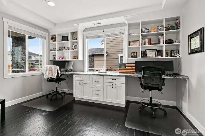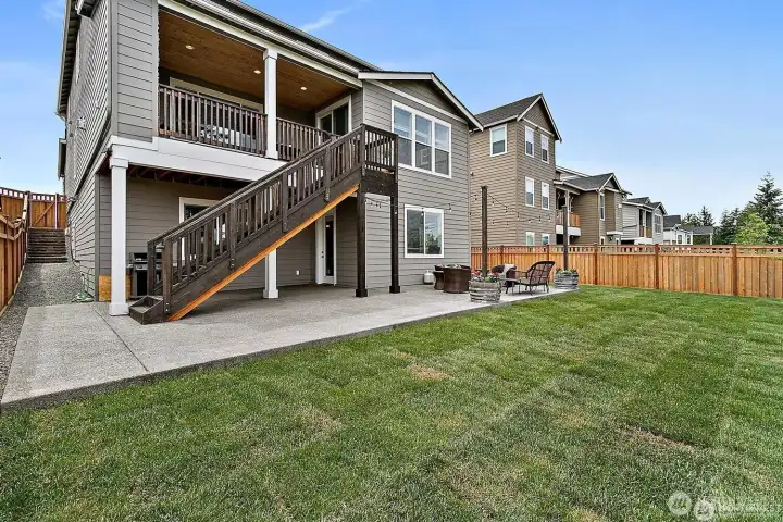 Stunning views enhance this entertainer’s dream home with over $100K in post-construction upgrades. Bright, open floor plan showcases a custom-built office with dual workstations and French doors—ideal for remote work or study. The chef’s kitchen features a large island, gas range, generous cabinetry, and ample serving space for gatherings of any size. The spacious dining area flows seamlessly to a private, covered deck with a stone fireplace, creating a true indoor-outdoor living experience. Stairs lead to an extended patio, inviting seating area, and manicured lawn—perfect for entertaining, play, or relaxation. Upstairs includes four well-appointed bedrooms, highlighted by a luxurious primary suite with a five-piece ensuite and dual walk-in closets. A second full bath and a convenient laundry room complete the upper level. The one-of-a-kind lower level offers epoxy floors, a stylish bar, bedroom, bath, and versatile bonus space—ideal for media room, game room, gym, or guest retreat. Energy-efficient systems, thoughtful upgrades throughout, and a pre-inspection provide added peace of mind. Close to parks, shopping, dining, and commuter routes. Located in a highly rated school district. Pre-inspected!