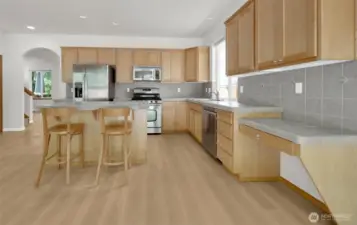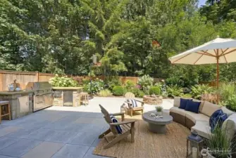 This south-facing home is situated on a quiet street with great light exposure. This was the former model home with many upgrades included. Chef's kitchen with gas range and newer appliances. Formal dinning room. Primary ensuite with large 5pcs bathroom, walk-in closet and gas fireplace. Generous guest bedroom with vaulted ceiling provides ample room for relaxation. Home is pre-wired for surround sound throughout. Built-in outdoor kitchen with gas grill and gas firepit. Large paved and fully fenced backyard. Pre-wired for outdoor music. Garage features pre-wired generator. Lots of built-in shelves and storage. New flooring. Enjoy easy access to shopping, dinning, schools, parks and major highways. Move-in ready! Virtual staging.