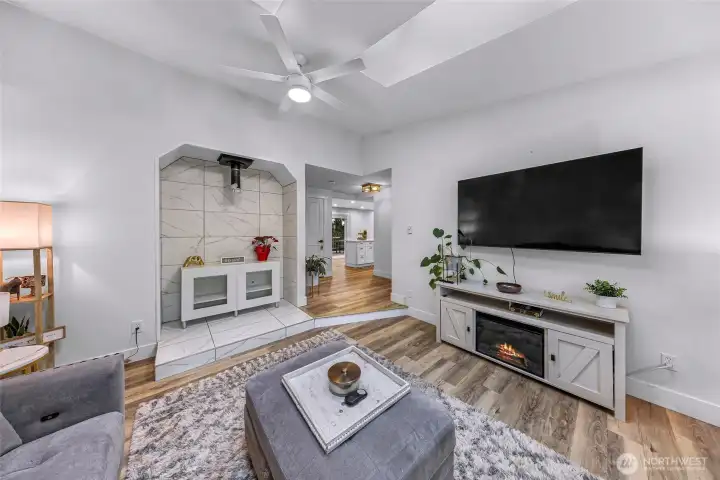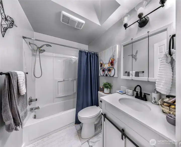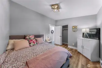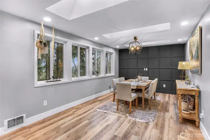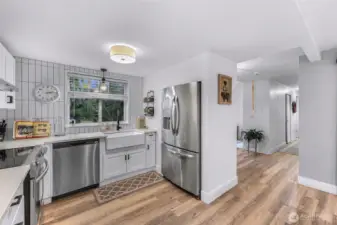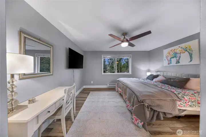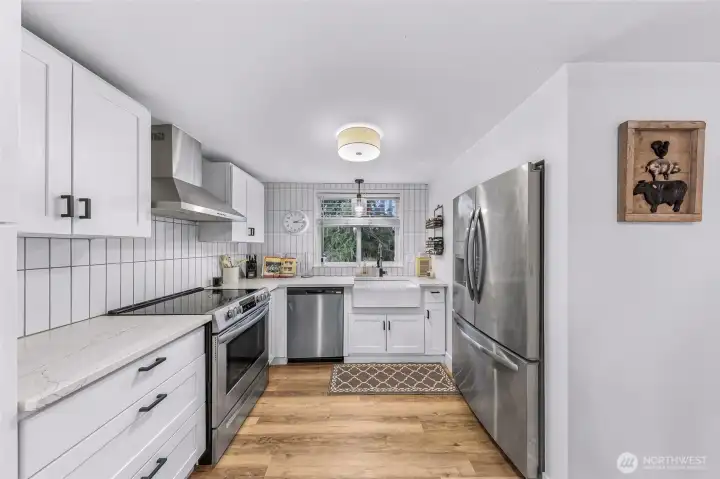 Charming 3-Bedroom Rambler with excellent Sunday Lake Location! Welcome home to this beautifully updated 3-bedroom, 2-bath rambler offering 1,392 sq. ft. of comfortable living space in a quiet, convenient neighborhood near I-5, town and schools. The home is filled with natural light and features a spacious open layout perfect for relaxing or cook up your favorite meals in the fully updated and modern kitchen with stainless steel appliances. This property boasts a spacious 2-car garage, perfect for storage or parking. Inside, you'll find a living room, dining room, and full laundry. Large primary bedroom with updated en-suite bath The home has durable and stylish LVP flooring, adding a touch of elegance. Outside, a fully fenced backyard awaits for outdoor activities, relaxation and room for pets or playing. Experience the perfect blend of comfort and convenience in this move-in ready home. Nearby playground and basketball court. 2 minutes to local school bus stop. Beautiful sunset views. Fresh interior paint. Available fully furnished.