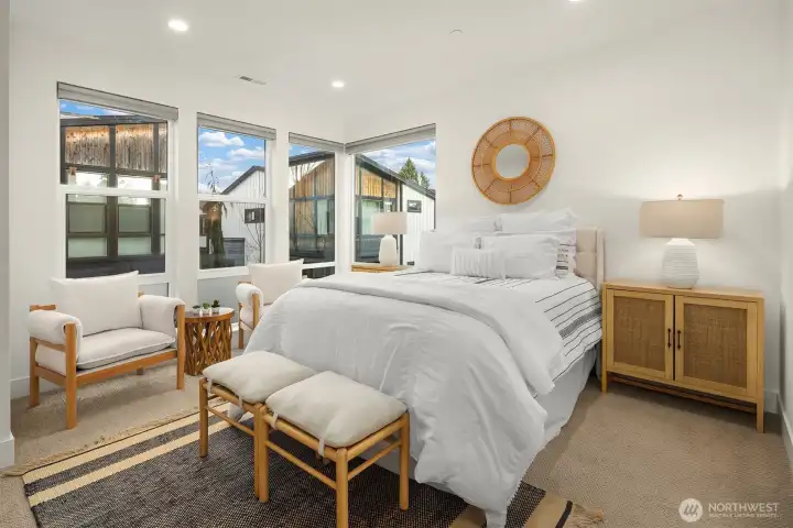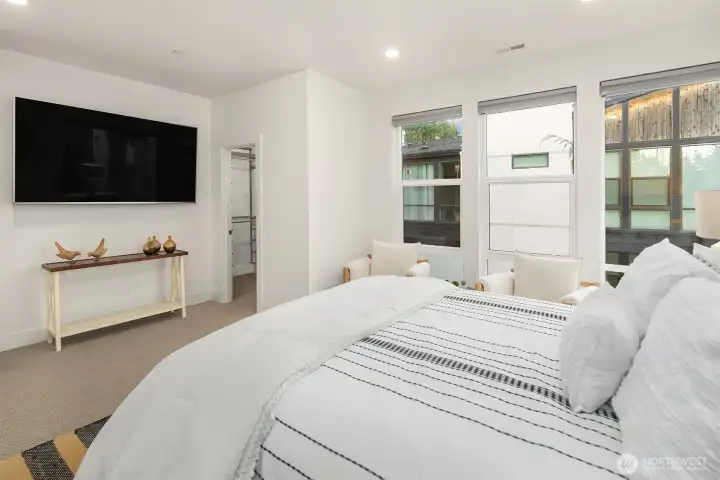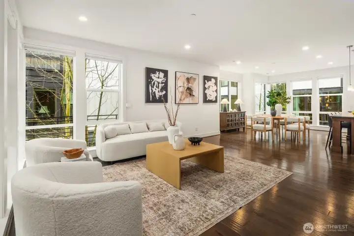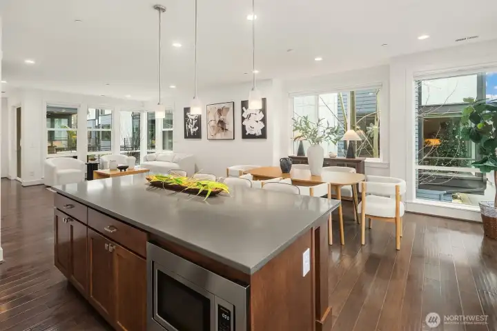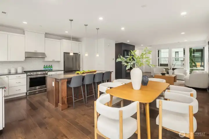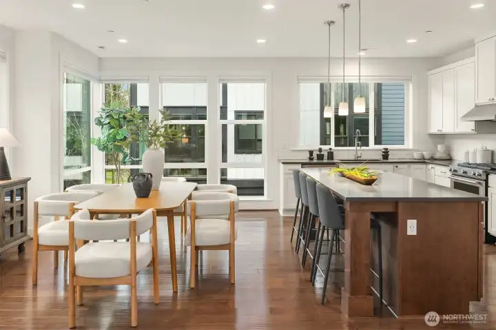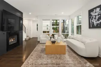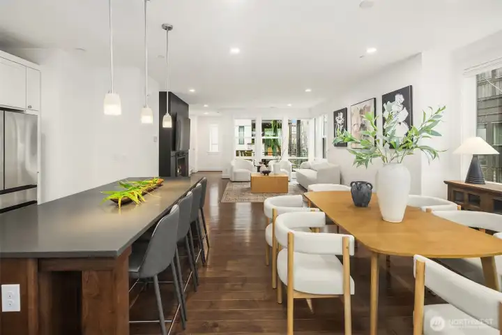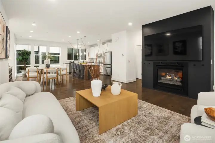 Contemporary corner-unit urban townhome featuring luxury finishes in the heart of vibrant Downtown Bothell. Expansive floor-to-ceiling windows and Toll Brothers’ signature 9-ft ceilings fill the home with natural light. The open-concept main floor highlights a chef’s kitchen with abundant cabinetry, a large island, stainless steel appliances, a sleek tiled gas fireplace, and a covered balcony for year-round enjoyment. The spacious primary suite offers a spa-inspired bath and walk-in closet. A versatile lower-level flex space serves perfectly as an office or guest suite with an en-suite bath. Additional features include a laundry room with a second W/D set on the upper level, central A/C, custom Elfa closet systems throughout, smart Lutron shades, and fresh interior paint. Located in the highly regarded Northshore School District. Minutes to I-405 and UW Bothell, and just steps from the Bothell Library, Burke-Gilman and Sammamish Trails, as well as historic downtown Bothell’s restaurants, shops, and parks.