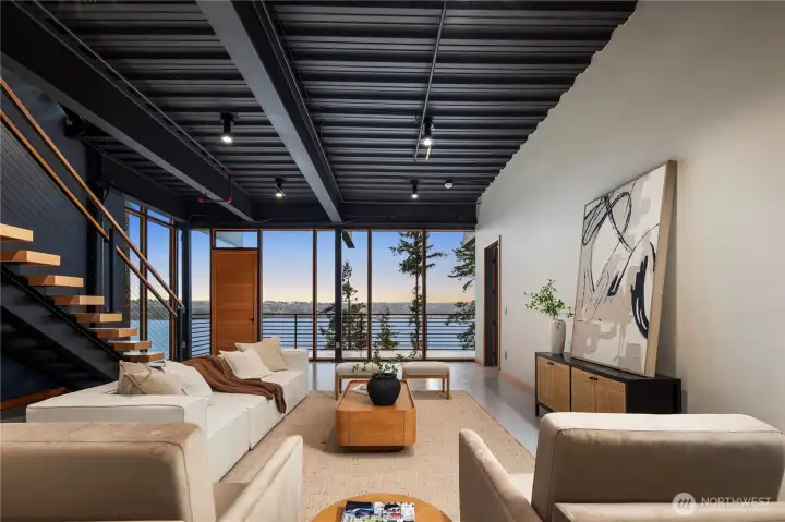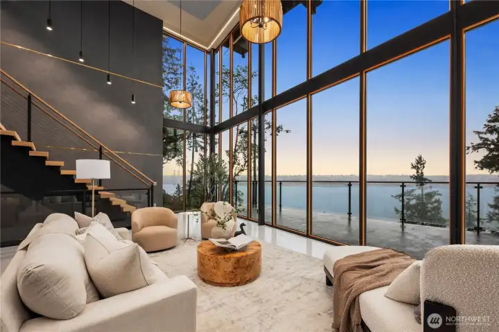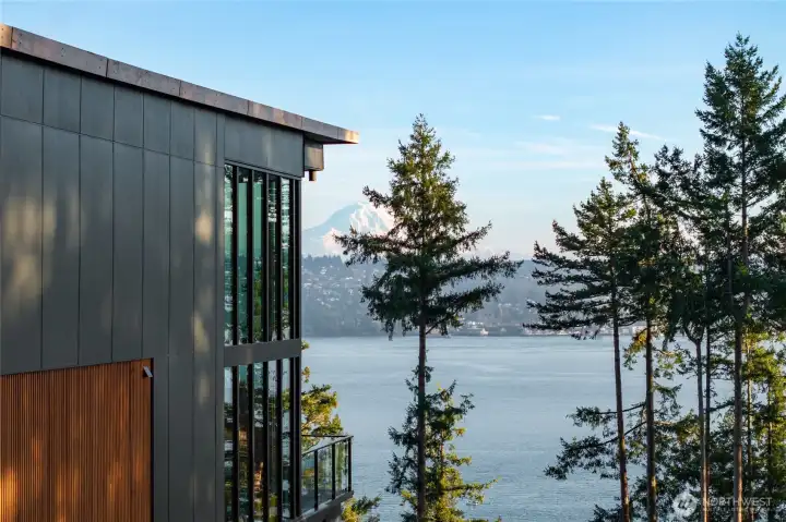 A one-of-a-kind waterfront estate, this new construction architectural masterpiece redefines luxury living in the Pacific Northwest. Designed to capture sweeping 270-degree views of Puget Sound, Mount Rainier, and the Narrows Bridge. The home is a striking composition of steel, glass, concrete, and refined finishes that exemplifies Northwest contemporary design. Just under 5,000 square feet, with 23-foot floor-to-ceiling windows that dissolve the boundary between indoors and out - framing water, sky, and mountains as living art. The modern open floor plan offers four private bedroom suites and expansive living areas ideal for elevated living and sophisticated entertaining. This is not simply new construction—it is a statement.