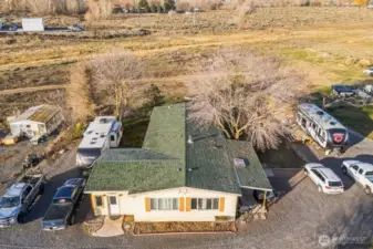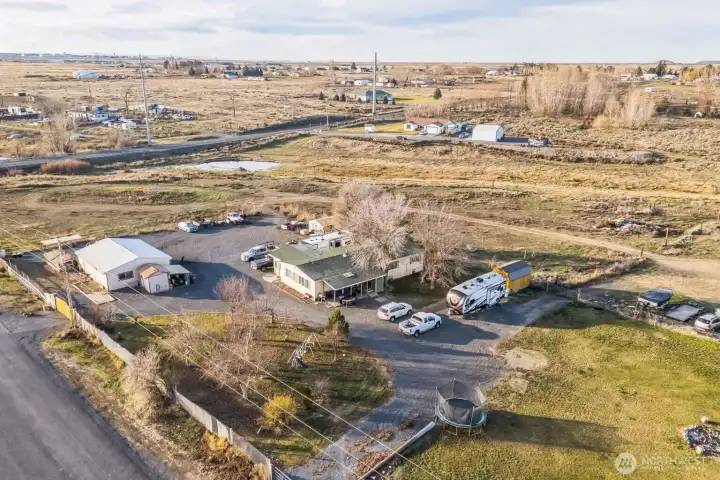 Discover 5 flat, nearly fully fenced acres ready to make your own, complete with a gated entrance at the start of the driveway and so much more! This beautiful country property features a spacious home with a detached shop ideal for projects and hobbies, a greenhouse, abundant parking, fruit trees, and stunning territorial views. Inside, you’ll find an inviting open living and dining area that flows seamlessly into the kitchen, plus an additional flex room perfect for extra storage or customization. The land has irrigation rights, brand new septic in 2023, and two RV hookups—fully connected to septic and well—ready for guests or your own getaway needs.