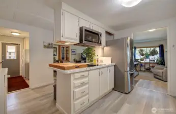 Wonderfully maintained and updated property. 2023 Heating & Cooling System, 2022 front windows metal to vinyl, newer appliances, washer and dryer stays. Newer more secured carport, 2 new sheds, garden work station, new exterior paint, 2022 updated LVP flooring, built in cabinets, fresh pain interior. 2 bedrooms and 2 bathrooms. Don't miss this one!
