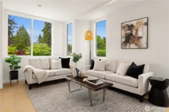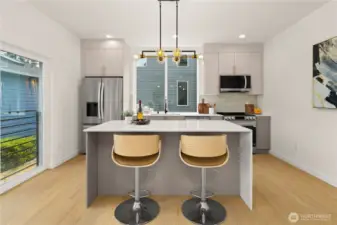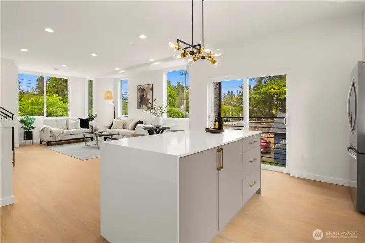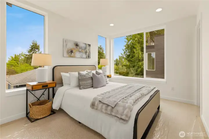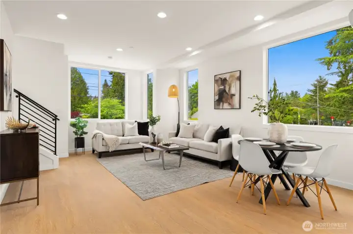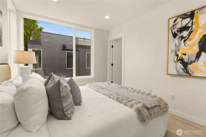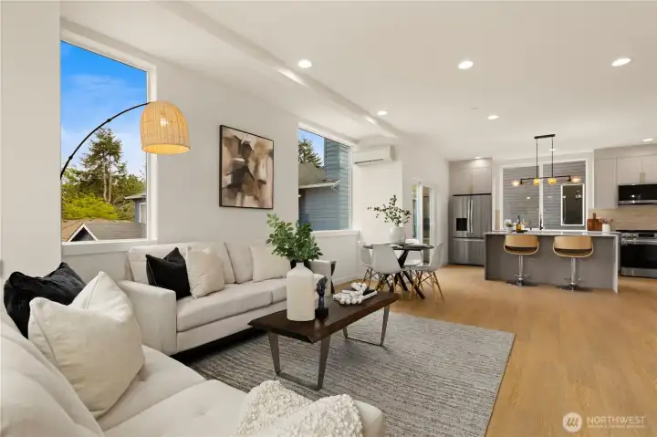 New year—last chance! This is the final Greencity home at The Roslyn with a rare attached garage—and it lives large. This premium end-unit new construction delivers refined, spacious living with oversized windows, abundant natural light, and a flowing open layout designed for everyday comfort and entertaining alike. The chef-inspired kitchen features locally crafted cabinetry, stainless steel appliances, and a generous island that anchors the home. Retreat upstairs to a serene top-floor primary suite with spa-like bath, plus a rare second bedroom and full bath on the same level—ideal for guests or WFH flexibility. Imagine hosting friends on your rooftop deck—sunset cocktails, city lights, and effortless indoor-outdoor living year-round. Thoughtful design, upscale finishes, and quality craftsmanship throughout. Perfectly positioned for seamless access to downtown Seattle, Northgate, I-5, transit, dining, and shopping, this home offers the convenience of city living without compromise. Secure a special 2.99% interest rate (terms apply) and step into 2026 with a luxury new construction opportunity that simply won’t come again!