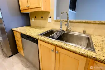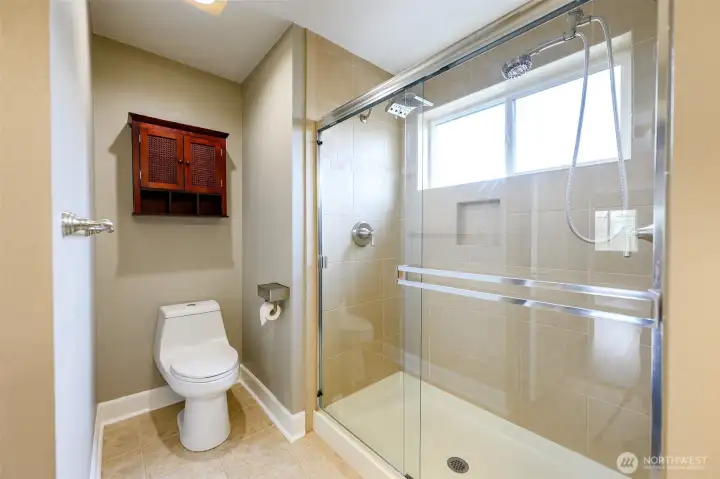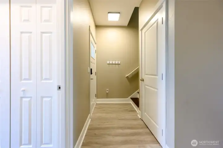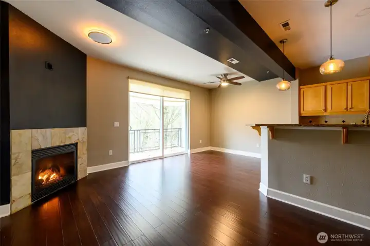 Beautiful 2 bedroom, 1.75 bath town house in Bothell with incredible high ceilings & open living concept with a cozy fireplace on the main level. Charming kitchen with granite tiled counters, gas range, dining area, & stainless steel appliances. Sliding door opens to rear deck great for BBQ'S on the green belt & extra storage closet. Primary bedroom located on upper floor w/ full bath & large walk in closet. Den/office nook at the top of the stairs. Additional bedroom on the main floor & utility closet w/ full size washer & dryer. Bamboo flooring on the main floor and upper level. LVP flooring in bathroom and kitchen. Excellent Bothell location just minutes from I-405/I-5, shopping, parks and more! Move-in ready! Detached garage downstairs.