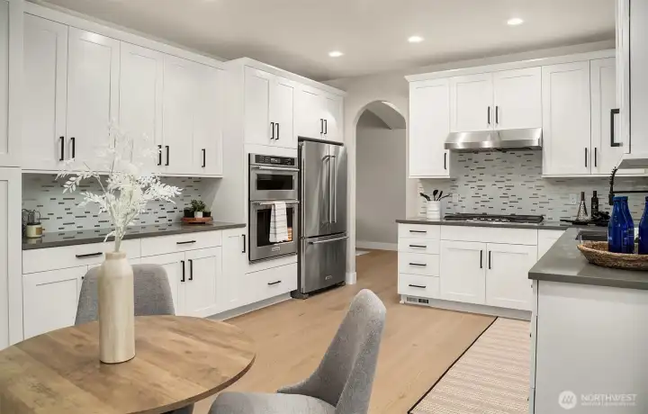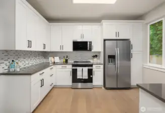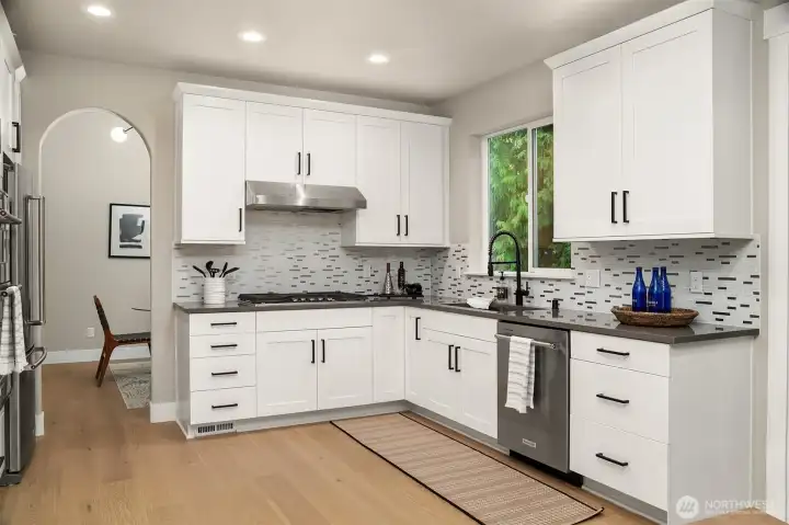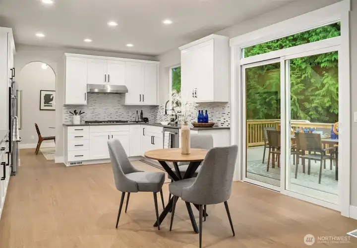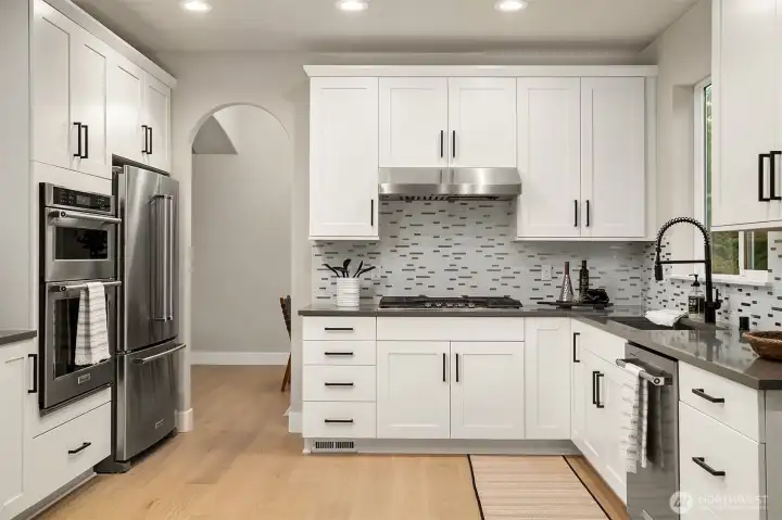 Nestled in Snohomish’s Kensington Estates neighborhood this studs-out 4-bed remodel is sure to impress. 3-car garage + separate rear garage for storage or toys. Thoughtfully designed w/ soaring ceilings & wide-plank oak hardwoods throughout the main. Every detail upgraded by Arcadia Homes: new light fixtures, hardware, flooring, kitchen, baths, deck, & driveway, showcasing their impeccable craftsmanship. Kitchen features white shaker-style cabinetry, quartz counters & sleek built-in appliances. Vaulted ceilings in spacious Primary Suite complete w/ skylight, WIC & 5-pc bath. Lower level includes rec room, full kitchen & bed —perfect for multi-generational living. Expansive backyard w/ deck & patio ideal for entertaining. Lake Stevens SD.