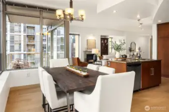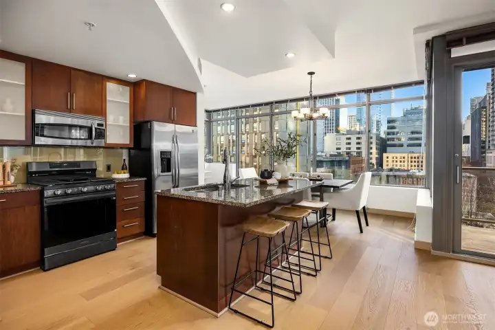 The ultra-convenient lifestyle of 2200 Westlake awaits in the epicenter of thriving SLU! Occupying the entire 7th floor S side, this 2BD/2BA residence spans 1423 SF and offers exceptional natural light and a floorplan that truly lives like a home. Offers sweeping urban views showcased throughout w/a formal entry, entertainer’s kitchen island w/breakfast bar, designated dining, spacious BDs, spa-inspired ensuite, walk-in closets, full guest BA, & large covered patio. Noteworthy highlights incl updated NEW wide-plank wood floors, prem updated ss appl w/gas stove, granite counters, gas fireplace and A/C. Professionally managed & offering residents 5-star amenities- fitness, spa, concierge, clubrm, conference rm, roof deck, guest ste & theater