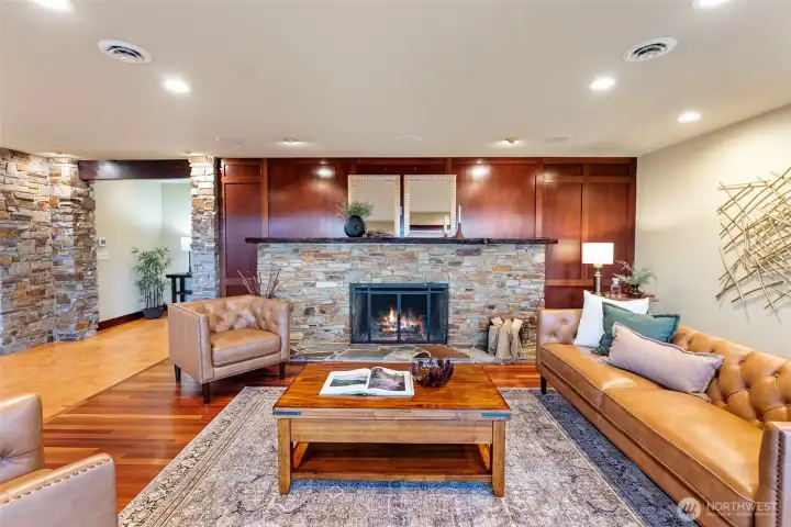 Perched above downtown Gig Harbor, this exceptional view home captures sweeping vistas of Puget Sound, Mount Rainier, and Point Defiance while offering a thoughtful design for both entertaining and relaxed daily living. The open-concept main level revolves around a true culinary kitchen featuring dual sinks and ovens, slab granite counters, a Dynasty commercial gas range, wine cooler, and richly crafted cherry cabinetry—perfect for hosting memorable gatherings. Elegant Milestone cement and Brazilian cherry floors add warmth and sophistication throughout. The luxurious primary suite is a private retreat with a spa-inspired 6x5 slate shower with dual heads and rain feature, a two-person jetted tub, towel warmer, and generous walk-in closet. Smart wiring enhances modern convenience, and the lower level provides outstanding flexibility with an expansive rec room, full bath, and multiple finished spaces ideal for a home office, screening room, gym, or guest quarters. Enjoy sunsets from the view deck, easy access to waterfront parks, dining, boutiques, and the vibrant downtown lifestyle just minutes away. A rare combination of quality construction, panoramic scenery, and adaptable living spaces—this home is designed to evolve with your needs while keeping you connected to the best of Harbor living.