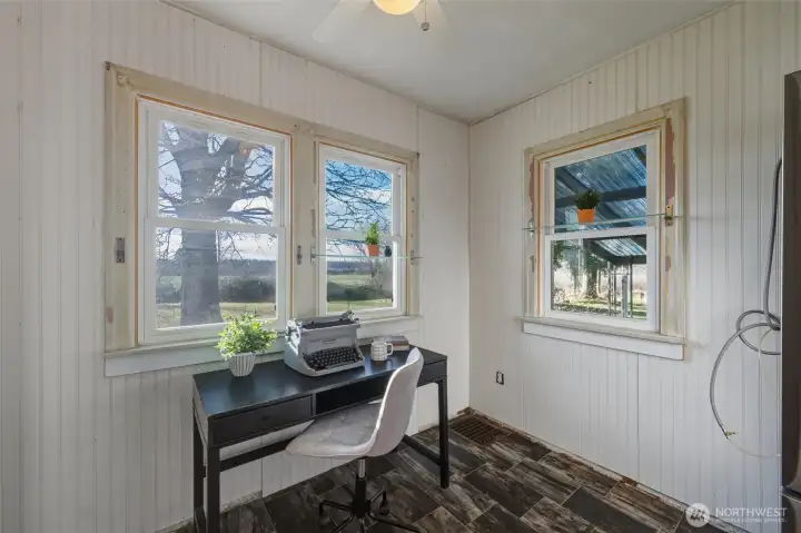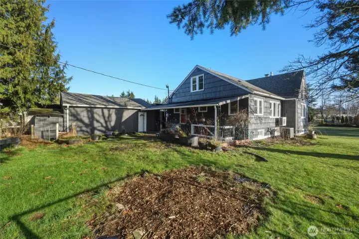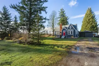 Timeless Craftsman home on a shy acre with 2 shops in Custer. This 1866 sq ft charmer is a 3 bedroom, 1.5 bath home with ample natural light, propane fireplace, formal dining room, eating nook, and large galley kitchen. Two main floor bedrooms help this live like a single story, but there is a huge upstairs with a large bedroom, bonus room and half bath. There is a full unfinished basement and for easy access to mechanical systems and plumbing and extra storage. Covered back porch, workshop, carport and large yard perfect for small hobby farm. With a second driveway, the shops are located at the far west end of the property and are awaiting their next use! Excellent location, close to the freeway with peekaboo Mt Baker Views.