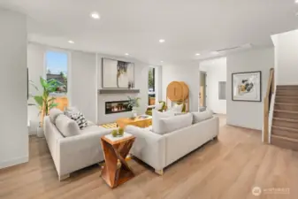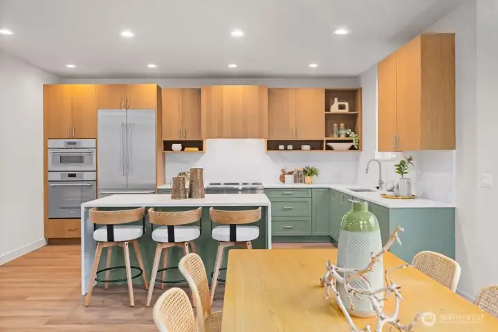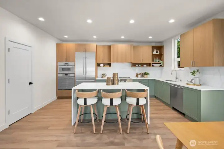 Discover contemporary Northwest elegance & timeless luxury in this stunning new construction home by Brikat Homes! The main level features a gourmet kitchen w/quartz island, Abodian cabinets, & premium Thermadore appliances including a double oven. Enjoy a formal dining room, living room w/fireplace, & easy access to patio and fully fenced yard. A convenient 1/2 bath completes the main floor. Second level presents 3 bedrooms, 2 baths, & large laundry room. Spacious primary offers a spa-like ensuite bathroom w/oversized shower, & walk-in closet. Top floor boasts vaulted ceilings, wet bar, 3/4 bath, 2nd living room, guest bedroom, & covered deck ideal for entertaining. EV-ready 2 car garage.