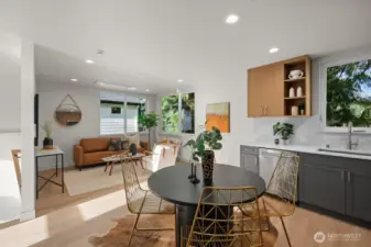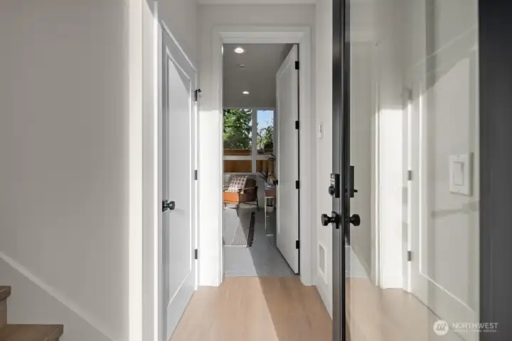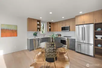 High-quality new construction by Brikat Homes blends modern elegance with everyday convenience. This thoughtfully designed home offers two bedrooms plus a versatile third bedroom/media room and two baths. The designer-curated interior features high-end appliances, quartz countertops, and custom Abodian cabinetry, with an open main-level layout ideal for dining and living, complete with full bath. Upstairs, the elegant primary suite includes a spa-like bathroom and second bedroom. The lower level features a spacious office/flex room or third bedroom with double doors opening to a patio and fully fenced yard. EV-ready one-car garage.