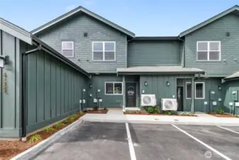 New year, new home sale! Welcome to this beautiful townhome in Trailside, offering fantastic views and privacy along the pond! The 2-bedroom plan includes a 2-car driveway, high-end & warm finishes throughout, fenced front yard, and serene pondside setting. The main floor offers a spacious open floorplan with light-filled great room, half bath, and kitchen with quartz counters, wood cabinetry, and stainless appliances. Upstairs, enjoy two large primary suites with en-suite baths and walk-in closets, plus laundry. With ductless heat/AC, 9-ft ceilings, premium flooring, outdoor storage, and more. This home is move-in ready and waiting for you. No HOA dues until 2027!