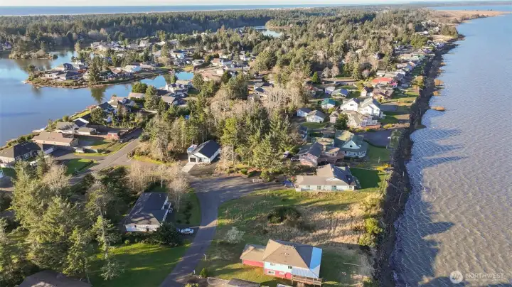 Rare medium bank Bay-Front lot! Unique opportunity to purchase one or both adjoining lots to build your dream getaway! Located in the desirable bay-side neighborhood of Ocean Shores, this property features breathtaking unobstructed views of the North Bay, Olympics & Mount Rainier. Adjacent lot also available MLS 2466211 - acquire both lots for over 20,000SF as a building site for the waterfront home you've been dreaming of. Enjoy morning sunrises & gorgeous views of the evening moon rising over the water. Property has been cleared w/ a permitted driveway & all utilities are in the street for easy & convenient hookup. This is an opportunity to secure a truly one-of-a-kind property at the Beach. New owners has the flexibility to join the community club anytime, or save on no dues if you are not interested in membership.